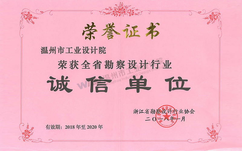 溫州市勘察設計行業(yè)誠信單位證書2024-2026
