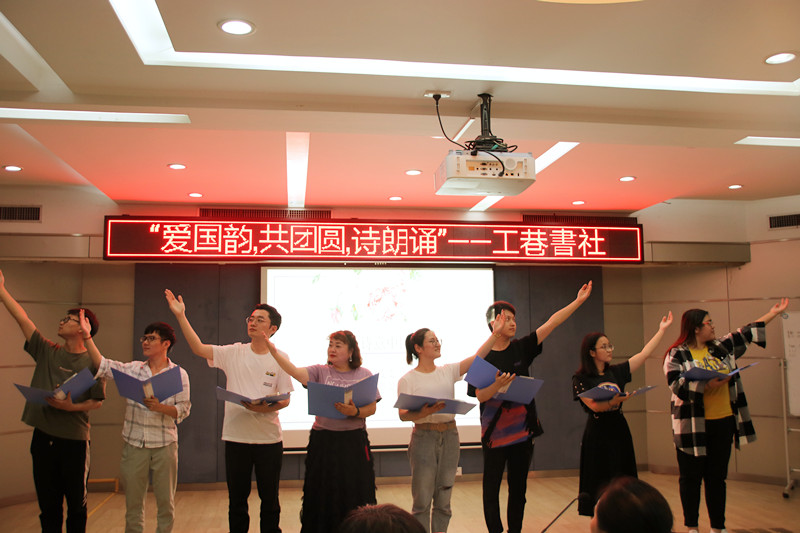 朗誦者分別誦讀了《可愛(ài)的中國(guó)》、《讀中國(guó)》、《詩(shī)意中國(guó)》等詩(shī)歌內(nèi)容,詩(shī)作磅礴大氣、婉轉(zhuǎn)流長(zhǎng),時(shí)而溫情傾訴,時(shí)而奔放熱情,時(shí)而娟娟細(xì)語(yǔ),時(shí)而豪情壯志,他們的朗誦激情和溫情并存。職工賴珉莉演唱了《水調(diào)歌頭》,引起大家的陣陣熱烈掌聲?;顒?dòng)邀請(qǐng)到的徐蒙樂(lè)老師對(duì)大家真摯的表演給予了充分的肯定,并對(duì)朗誦時(shí)的語(yǔ)言、神態(tài)、儀表動(dòng)作和技巧方面給出了專業(yè)的指導(dǎo),使大家獲益匪淺。